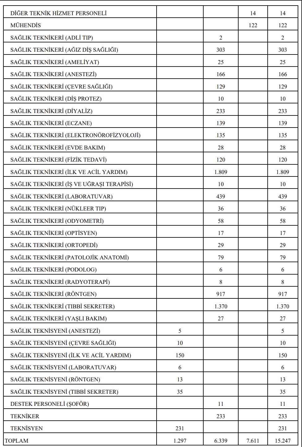 15 bin 247 sözleşmeli personel, 2 bin 753 sürekli işçi olmak üzere toplam 18 bin yeni personel alımı yapılacaktır.