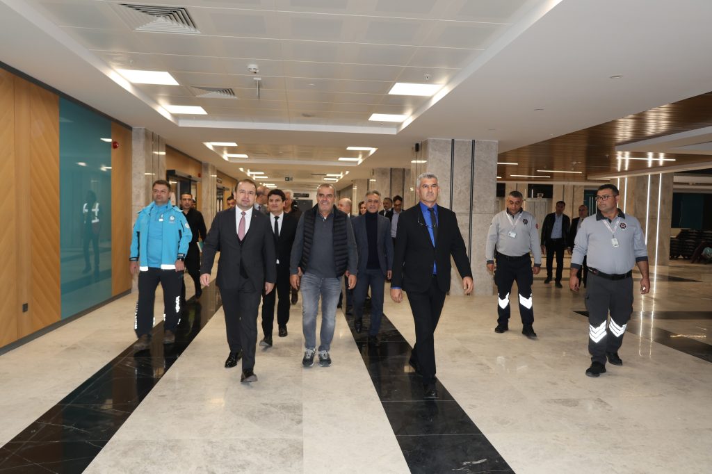 Müdür Şenkul, hastanenin yataklı servisler, acil servis, ameliyathane, poliklinik alanları ve görüntüleme alanları başta olmak üzere tüm birimlerini gezdi. Ayrıca hastanenin özellikli birimleri ile teknik ve tıbbi altyapısı hakkında yüklenici firma yetkililerinden ve teknik ekiplerden detaylı bilgi aldı.