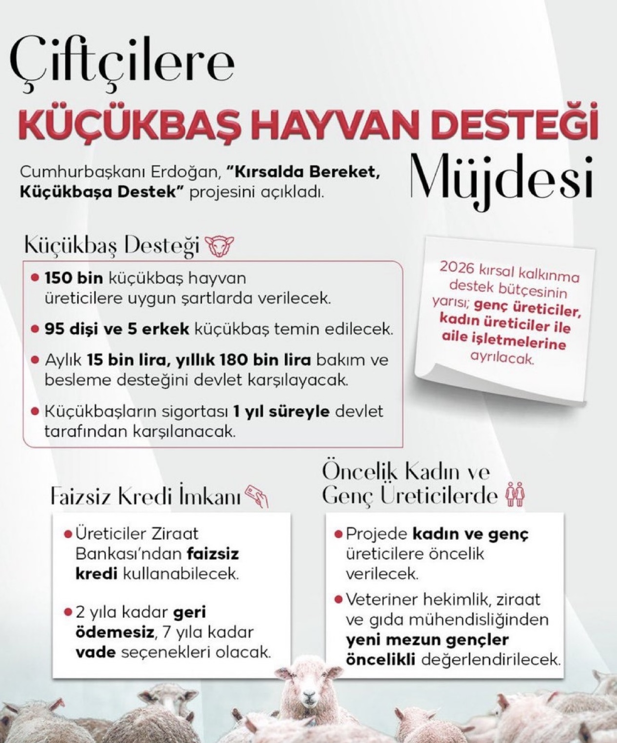 Cumhurbaşkanı Erdoğan Tarafından Açıklanan Yeni Proje Kapsamında, Üreticilere Uygun Şartlarda Toplam 150 Bin Küçükbaş Hayvan Temin Edilecek. Proje Detaylarına Göre: