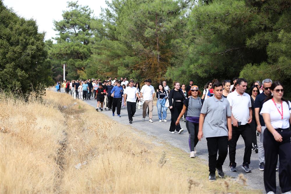 İzmir Çiçekliköy Şehir Ormanı’nda fizyoterapist eşliğinde yapılan ısınma egzersizlerinin ardından başlayan yürüyüş, Yakaköy Atış Poligonu’n da sona erdi. Katılımcılar doğa yürüyüşü sırasında çevre duyarlılığına dikkat çekmek amacıyla çöp toplama etkinliği de gerçekleştirdi.