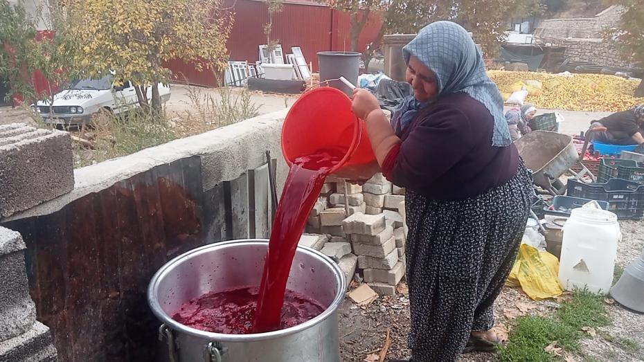 Mersin’in Gülnar ilçesindeki kadınlar, el yapımı nar ekşisi kaynatma geleneğini yaşatıp imece usulü üretim yapıyor.