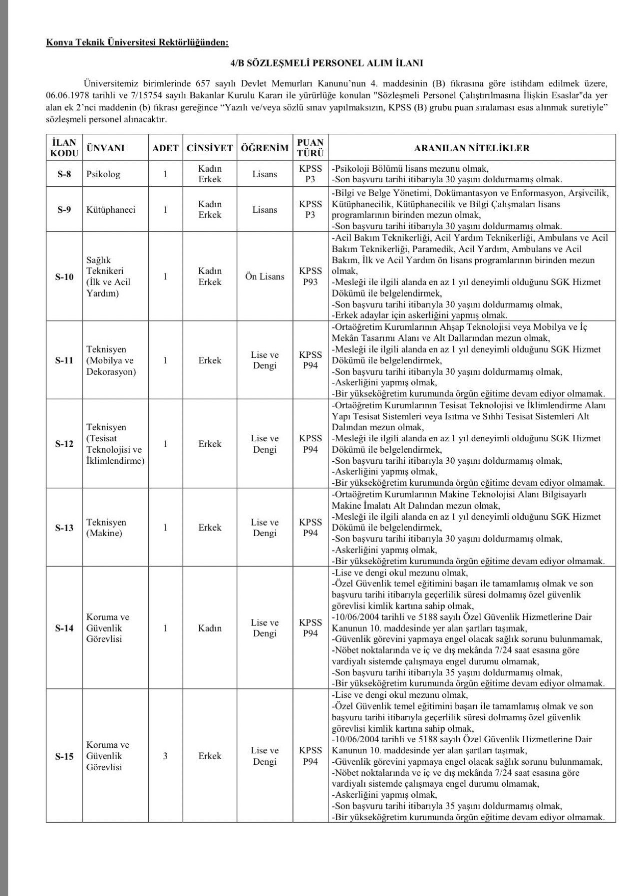 İlanın En Kritik Noktasını Belge Teslim Süreci Oluşturuyor. Kariyer Kapısı Üzerinden Başvurusunu Tamamlayan Adayların, Sistemden Alacakları “Aday Başvuru Bilgileri” Dokümanını En Geç 09 Ocak 2026 Tarihi Saat 17.00’ye Kadar Konya Teknik Üniversitesi Personel Daire Başkanlığına Şahsen Teslim Etmeleri Şart Koşuluyor. Posta, Kargo Veya Diğer Yollarla Yapılan Müracaatların Kesinlikle Değerlendirmeye Alınmayacağı Vurgulandı.