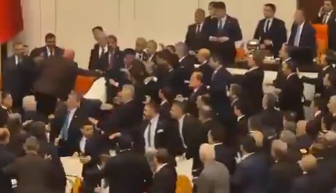 Sözlü tartışmaların kısa sürede fiziksel arbedeye dönüştüğü Genel Kurul’da, bazı milletvekillerinin birbirlerine yumruk attığı görüldü. Tansiyonun zirveye ulaştığı anlarda AK Parti grubu, kürsü önünde adeta “etten duvar” örerek yemin töreninin güvenliğini sağlamaya çalıştı.