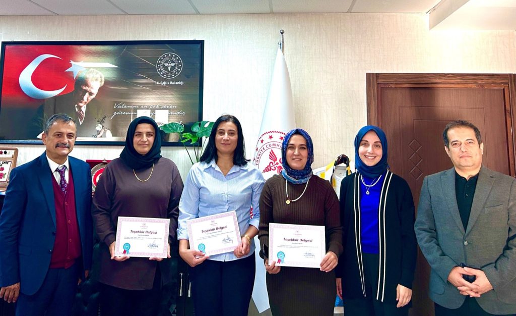 Teşekkür belgesi takdim törenine İl Sağlık Müdürü Dr. Erol Emre Ömür’ün yanı sıra Sağlık Hizmetleri Başkanı Dr. Necdet Özcan ve Kamu Hastaneleri Başkanı Uzm. Dr. Ayşe Rumeysa Doğruyol da katıldı.