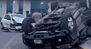 Hastane otoparkında otomobil takla attı