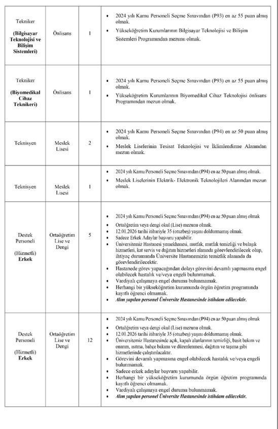 İlana Başvuracak Adayların Gece Veya Gündüz Vardiyalı Çalışmaya Engel Bir Durumunun Bulunmaması Gerekiyor. Ayrıca Atanmaya Hak Kazanan Adaylardan, Görevlerini Devamlı Yapmalarına Engel Bir Akıl Hastalığı Veya Engeli Bulunmadığını Gösteren Sağlık Kurulu Raporu İstenecek. Adaylar İlan Edilen Pozisyonlardan Sadece Birine Başvuru Yapabilecek.