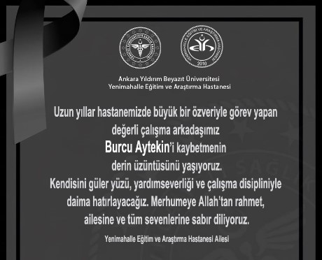 Yenimahalle Eğitim ve Araştırma Hastanesi personeli Burcu Aytekin’in vefat haberi, tüm mesai arkadaşlarını ve sağlık camiasını yasa boğdu. Hastanenin sevilen yüzlerinden olan Aytekin için görev yaptığı kurumda duygusal bir cenaze töreni düzenlendi. Hastane yönetimi, hekimler ve sağlık çalışanlarının katıldığı törende gözyaşları sel oldu. Yönetim, yayımladığı mesajda Aytekin’in özverili görevine ve güler yüzüne dikkat çekerek başsağlığı diledi.